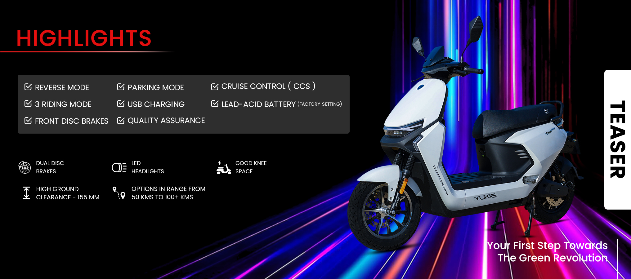 Yukie produces electric scooters that unites powerful technology and high-impact performance with attractive designs for transforming modern Indian commuting practices. The urban and rural transportation experience with Yukie creates a smooth environmentally friendly package that delivers affordability together with superior comfort.